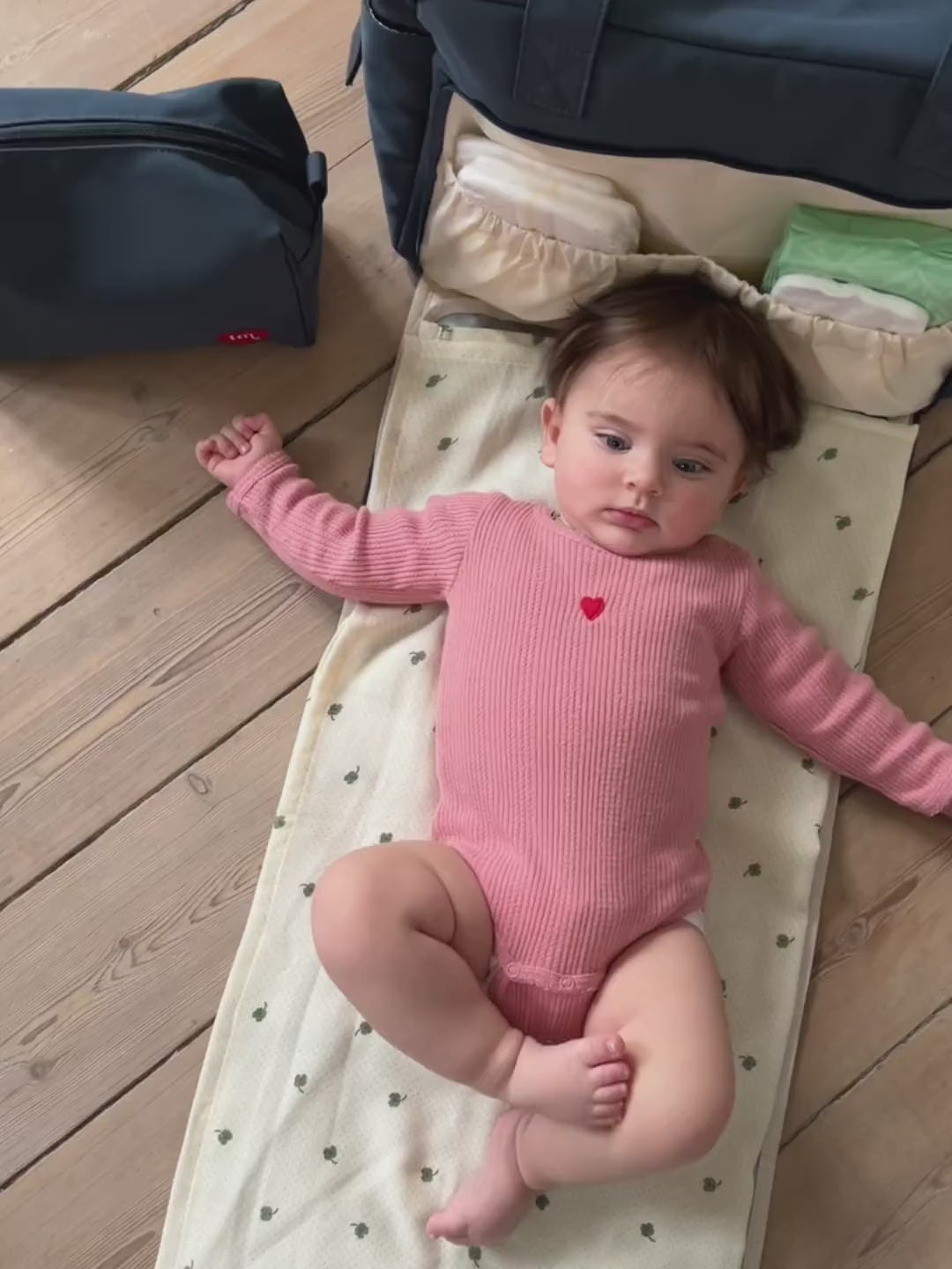 A spacious nursing bag with everything you could want! The nursing bag has been upgraded with a lot of smart features that any parent will love. Once you have the bag, you don't need much more than care products for your baby. The bag contains a changing mat in the large outer pocket. The changing mat can be unbuttoned, so the room could be used for storing other things. In addition, the bag is equipped with large, spacious pockets with room for, for example, a pack of baby wipes. In the bag's large compartment, you will find a double pocket with a thermal lining (there is room for two bottles here). The bag is equipped with straps in different lengths, which makes it easy to carry the bag over the shoulder, even when the bag is full. The zips open easily with one hand, the buttons are magnetic and make it extra easy to open and close with just one hand when you have a baby on your arm. Made from 100% recycled polyester that is easy to wipe off and has no PFA coating.