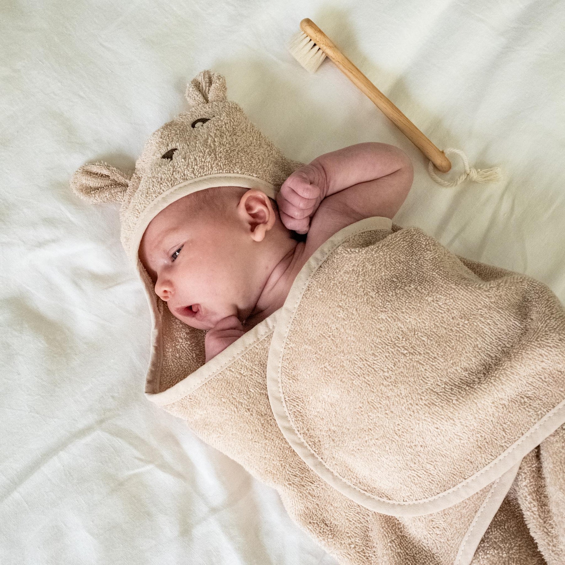 A soft animal-shaped bath towel swaddle is a lovely and practical addition to any child's bathroom routine. Made from 100% soft organic cotton terry cloth. This swaddle towel is designed to keep little ones comfortably warm after a bath.